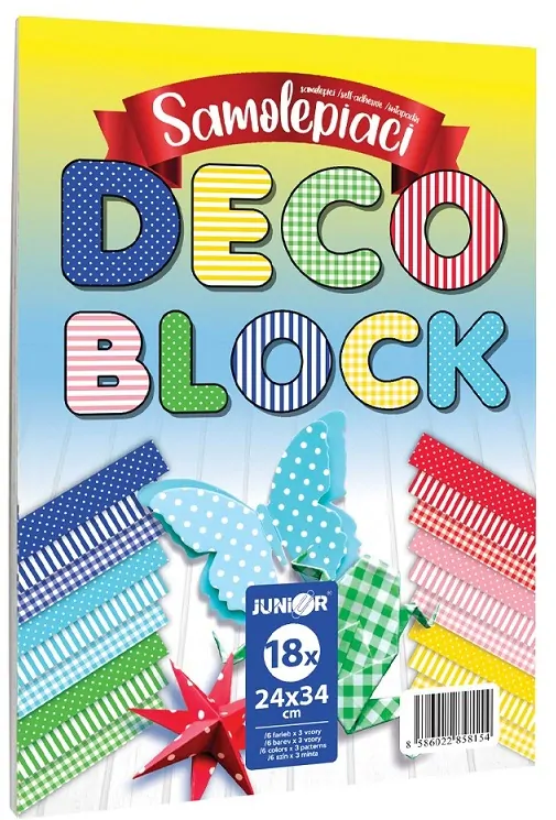Farebný dekoračný papier - DECO BLOCK - samolepiaci 6 farieb - 3 vzory (18 ks)
